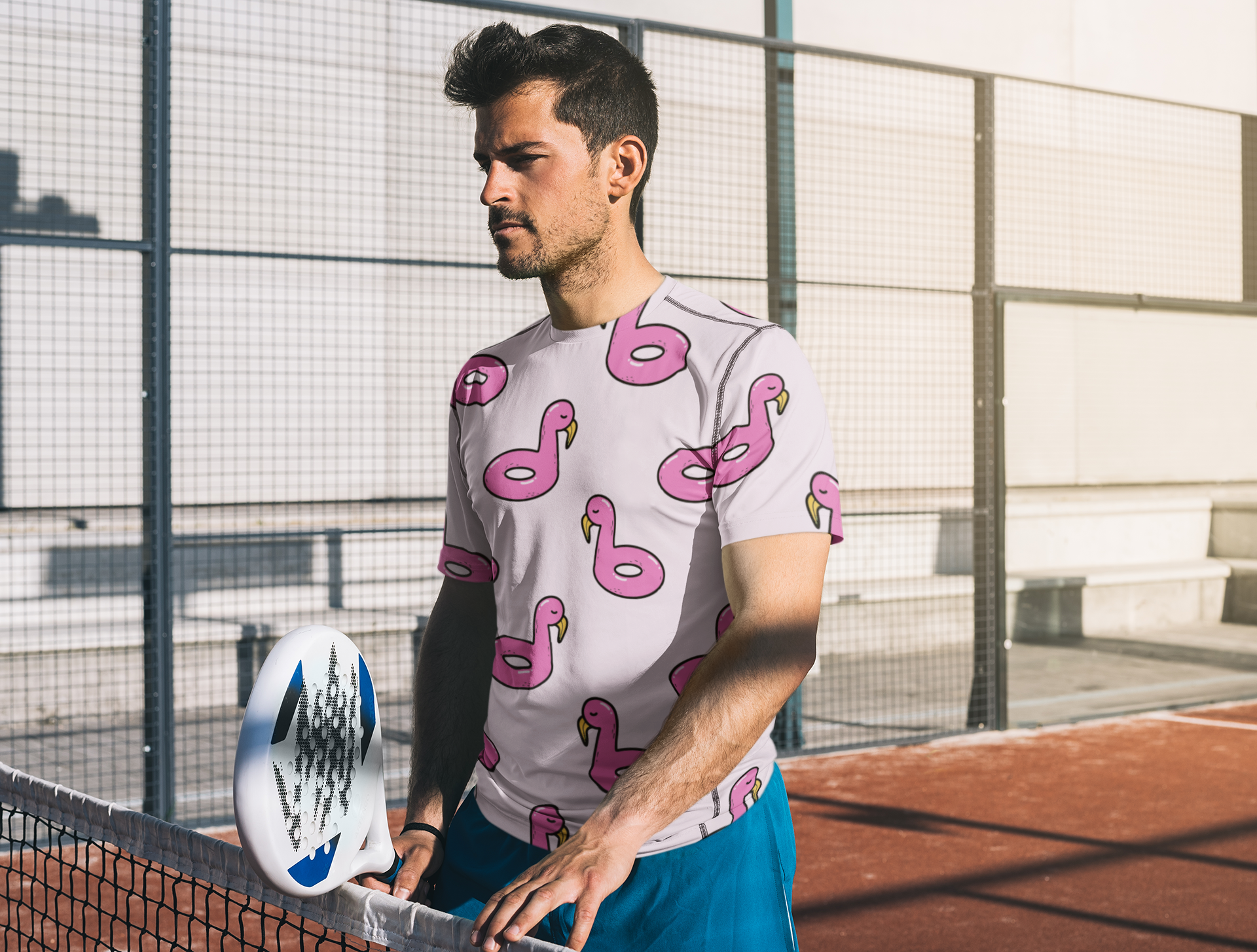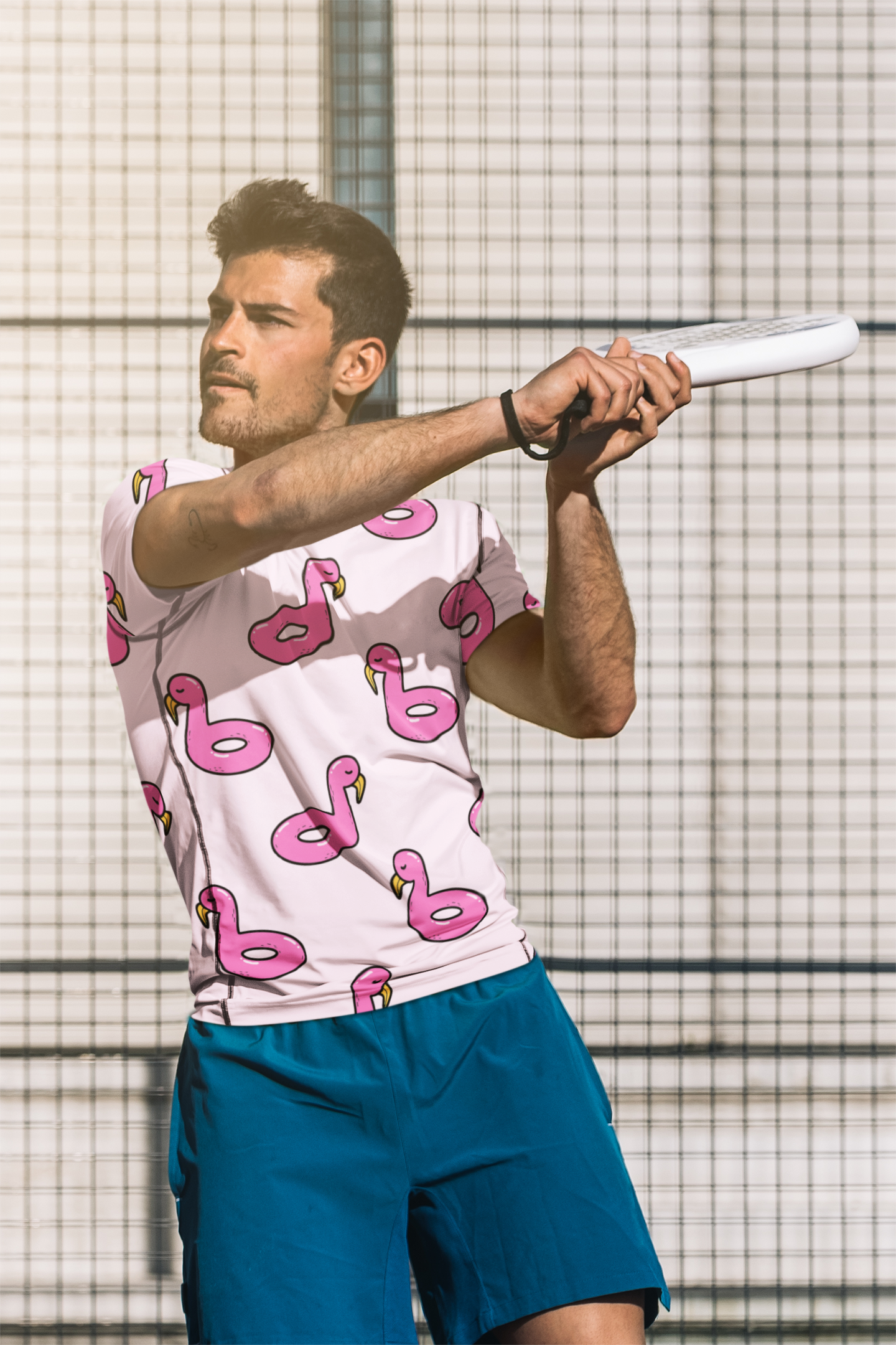 Amusement flottant avec des flamants roses